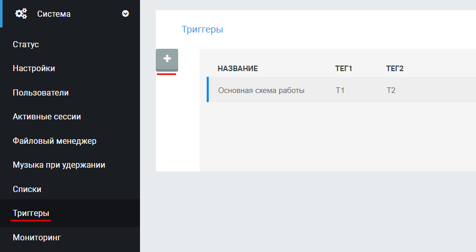 Чтобы добавить новый триггер нажмите кнопку с изображением плюса Добавить триггер в верхней части страницы.