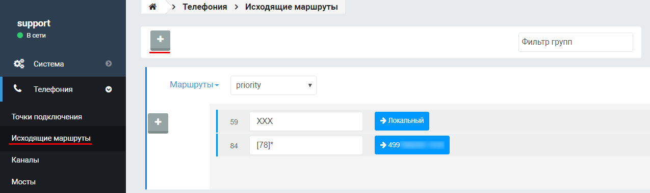 Исходящие маршруты позволяют определить каналы, по которым пойдет исходящий вызов. Группа маршрутов задает правила маршрутизации группе точек подключения и действует на
